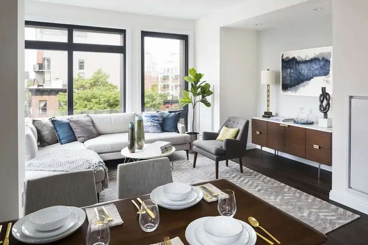 Residents of this eleven-story luxury condominium enjoy a suite of modern amenities and services. The 24-hour door attendant welcomes residents into the warmth of the lobby, which features skylights and direct access to the serene garden that connects to the terrace on the second-floor. Other highlights include a light-filled fitness center enveloped in floor-to-ceiling windows, on-site parking, resident bicycle storage, resident’s lounge with adjoining terrace for al fresco dining, and a curated roof deck replete with lounges, grills, and dining areas. The building’s location at Baltic and Fourth, the crossroads of prime Park Slope, Boerum Hill and Gowanus, allow for at-a-moment’s access to the many trendy boutiques and upscale restaurants in the vicinity as well as easy reach to renowned cultural institutions and the Atlantic Terminal transit hub.